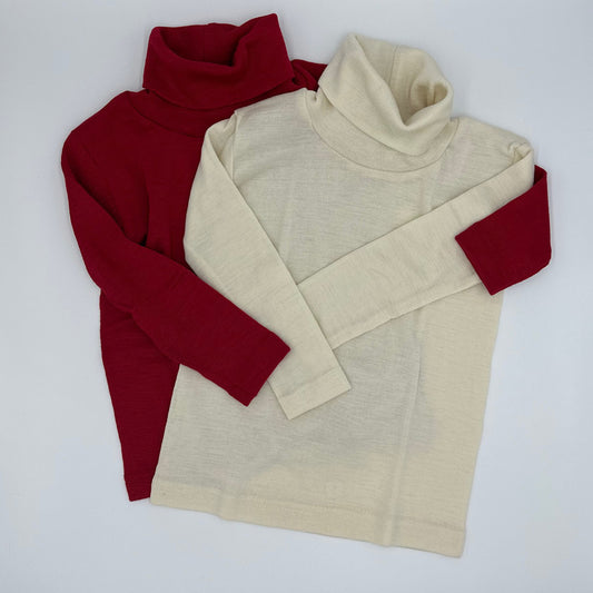 OUTLET ENGEL Kids' Organic Wool/Silk Polo Shirt with Long Sleeves - RED or WHITE