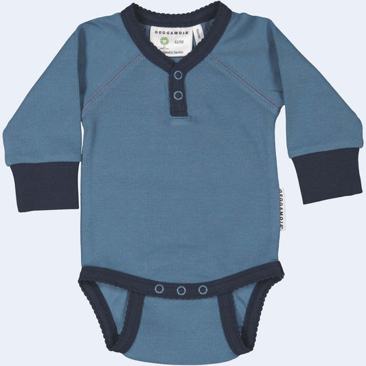 OUTLET Geggamoja® Body Shirt, Snap-Bottom, in Organic Cotton - SOLID BLUE with DARK BLUE TRIM