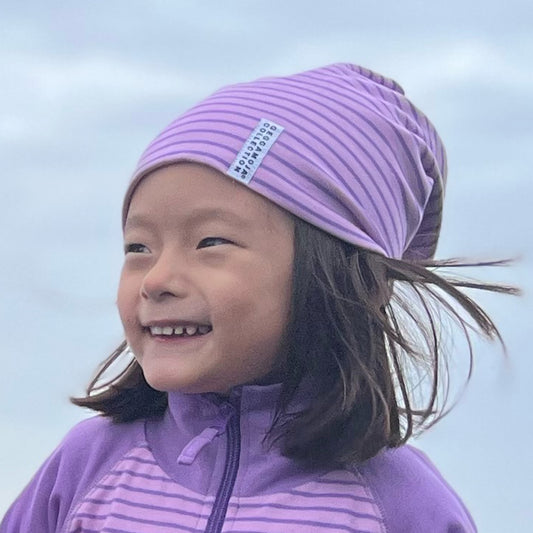 Geggamoja® Light Purple Striped Hat, Organic Cotton with Fleece Lining, 5 yr to Adult
