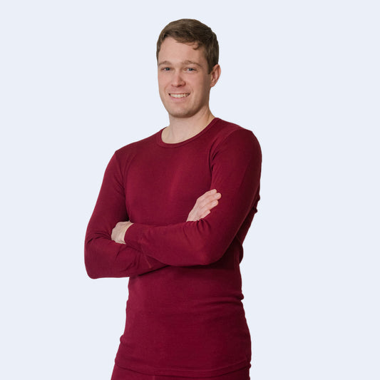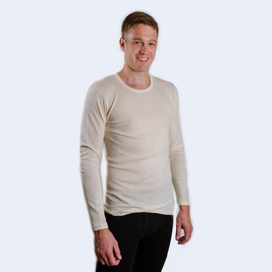OUTLET HOCOSA Men or Women's Organic Wool Long-Sleeve Underwear Shirt, Round-Neck