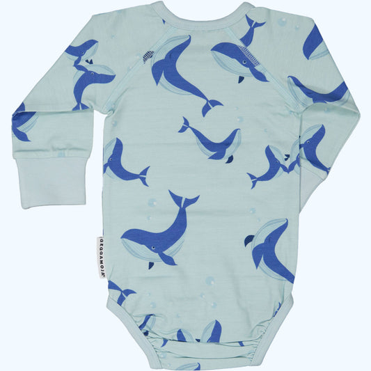 Geggamoja® Toddler/Little Kids Short-Sleeve Shirt in Organic Cotton/Bamboo - BLUE WHALES, 6mo-4yr