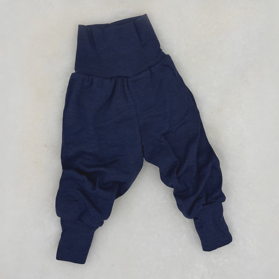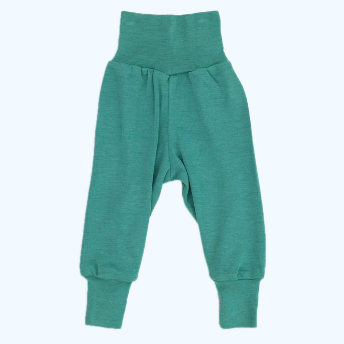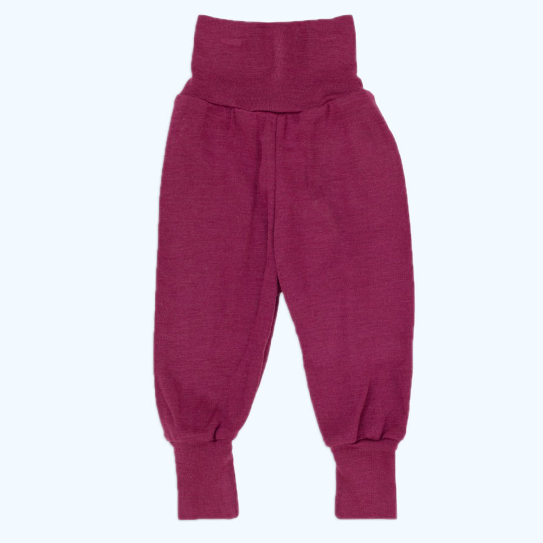 These soft, cozy baby pants are made of 70% merino virgin wool and 30% mulberry silk. These natural fibers have temperature-regulating properties, keeping baby warm in cool weather and cool in warm weather.