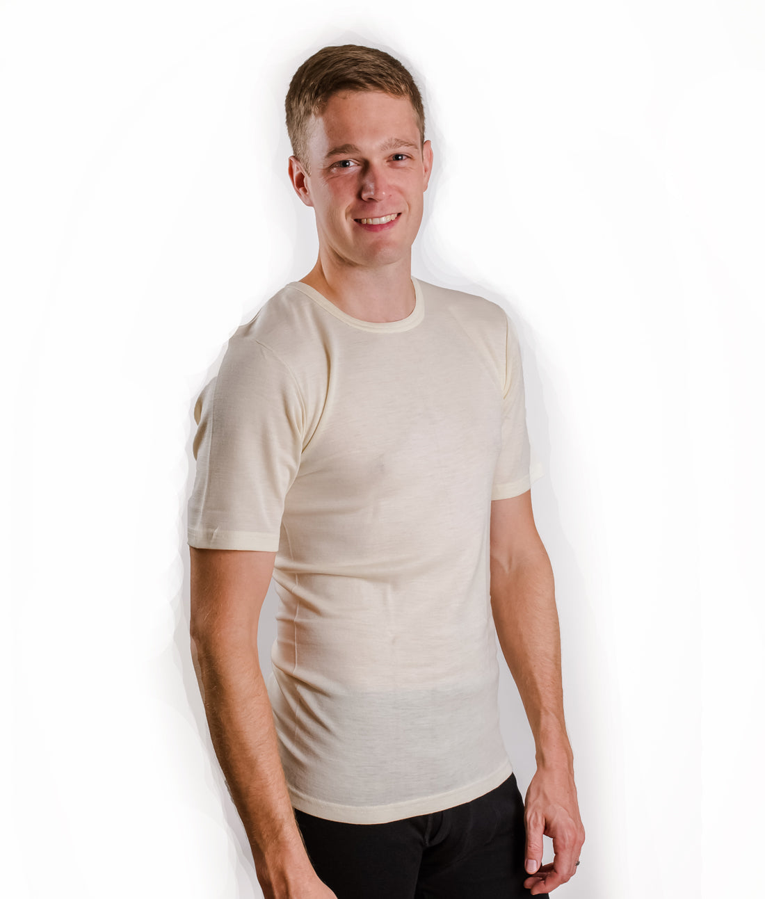 Wool/Silk Short-Sleeved Undershirt, Round Neck, for Men & Women.