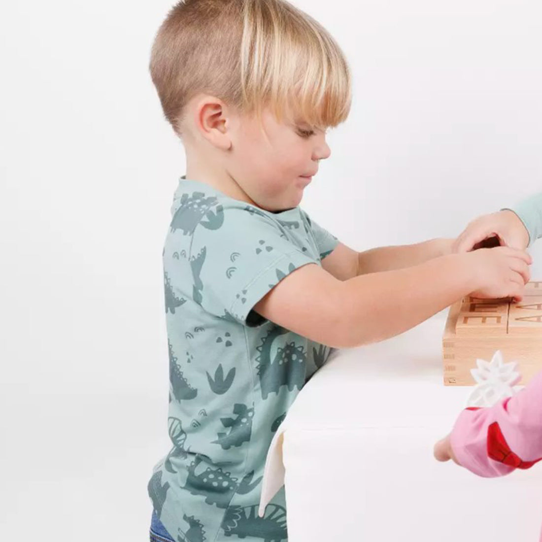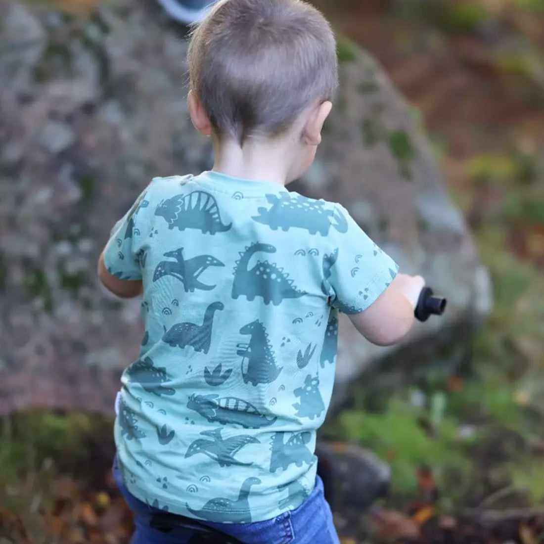 Short-sleeve T-shirt in 67% Bamboo/ 27% Organic Cotton/ 6% Elastane, with kids' favorite dinosaur print.