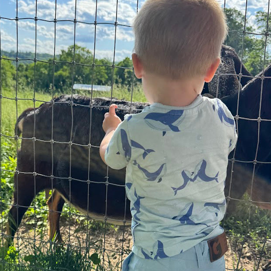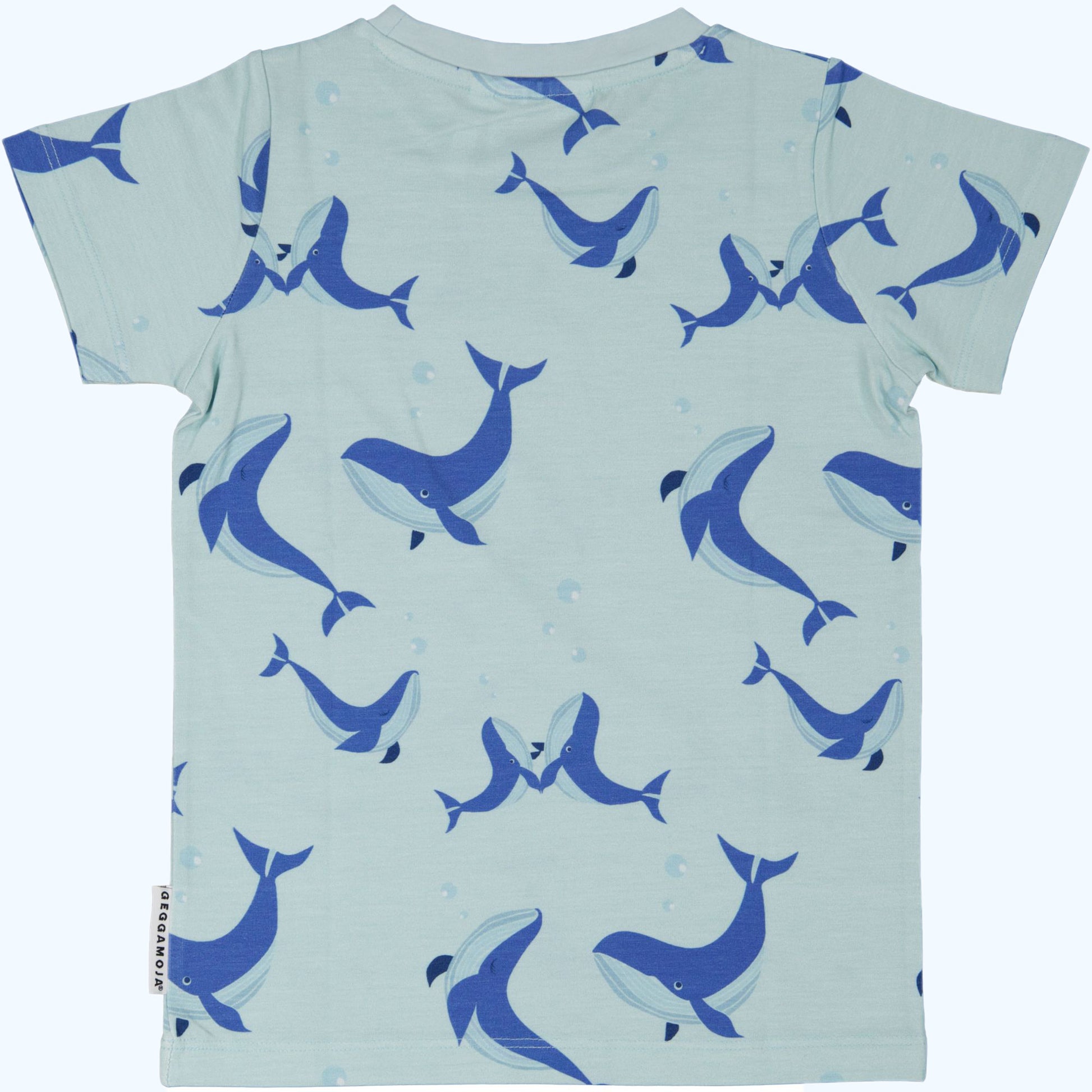 Geggamoja® Toddler/Little Kids Short-Sleeve Shirt in Organic Cotton/Bamboo - BLUE WHALES, 6mo-4yr