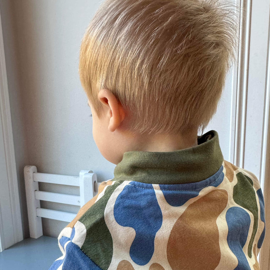 Made with organic cotton, with a brushed inner lining for extra layers of warmth and comfort. Soft, wide cuffs on arms, waistline & neckline, to help keep out wind & chill.